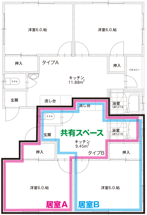 - ● ルームシェア方式