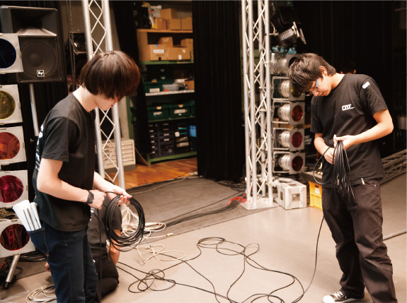 授業や学内イベントとは違う実際の現場でプロの方たちと一緒にスタッフとしての経験を積みます。