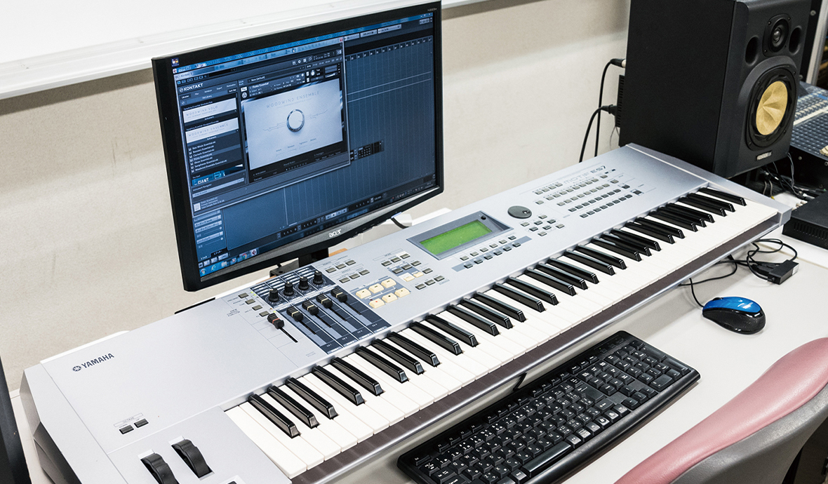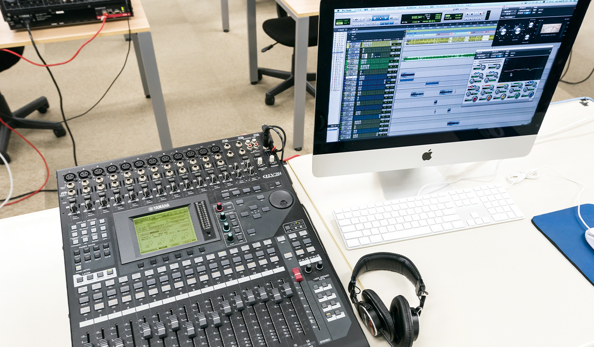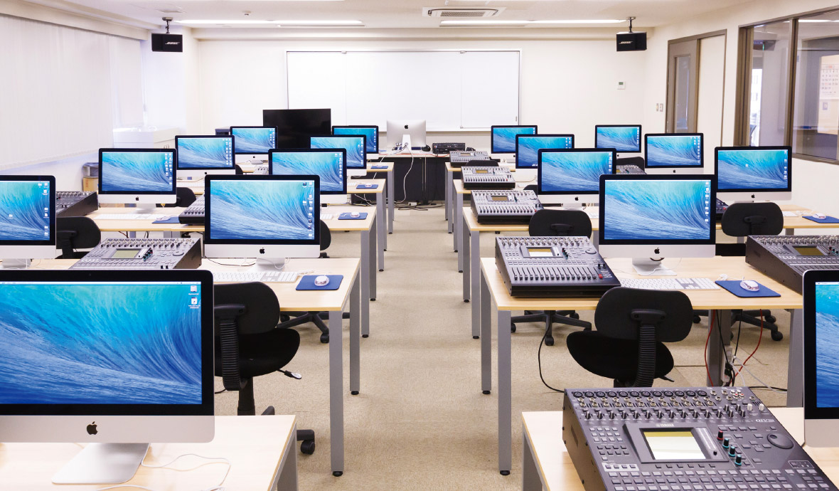 Pro Toolsとデジタルミキサーを一人一台の環境で使用できる実習教室。レコーディングやPAの基礎となるミキシングはもちろんデジタルネットワークの理解を深めることができます。