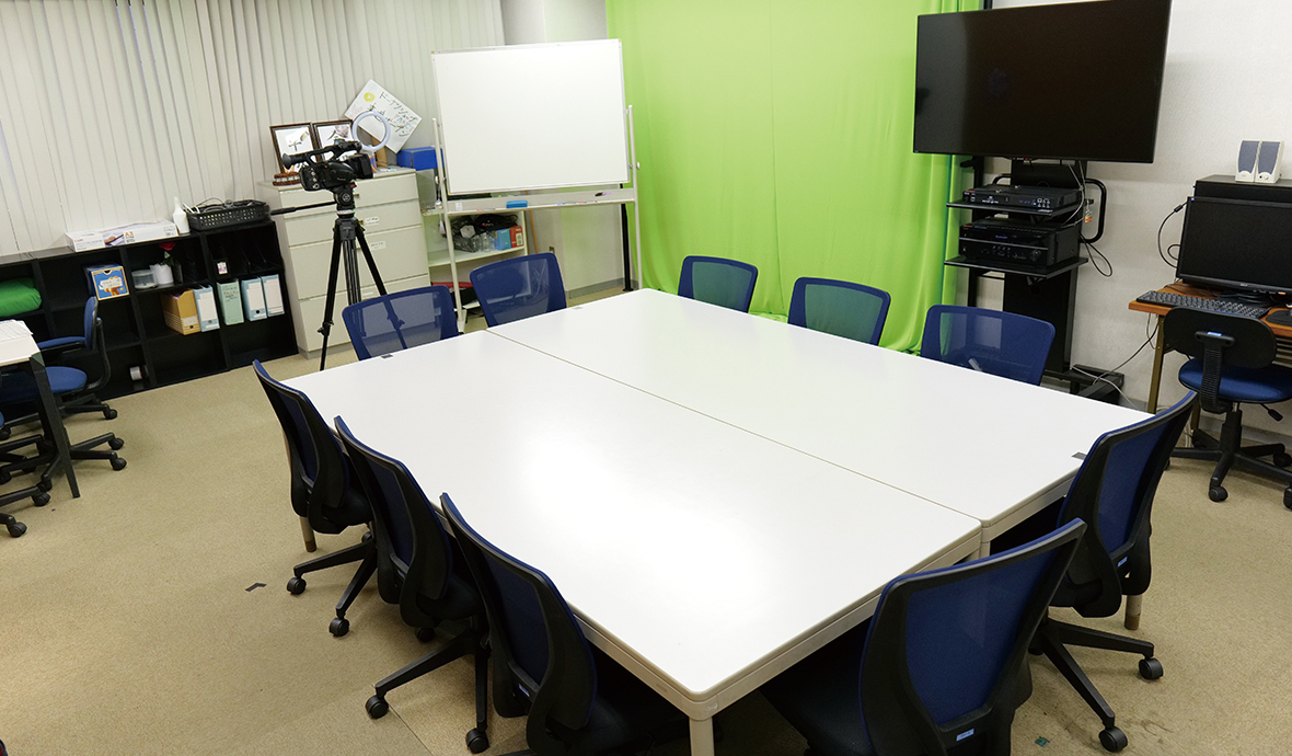 企画したイベントのイメージを固めたら、制作ルームでカタチにします。作業用のPCも多く、資料がとにかく充実しています。