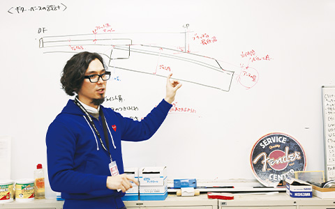 製作するギター・ベースのプランニングから設計、図面作成を行います。電動工具の使い方も学ぶなど、スムーズかつ安全な作業を目指します。