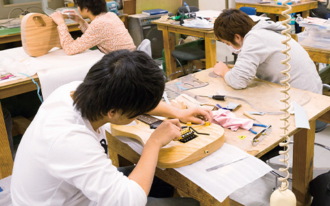 ギター・ベースの製作方法を基礎から習得。具体的な工具の使用法、木工加工や塗装などの製作工程をマスター。2年次はオリジナル作品も製作します。