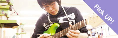 趣味としてギターを演奏する中で、弦交換などのメンテナンスのほうに楽しさを感じるようになり、いつしかそれを仕事にしたいと思うように。在学中の目標は、カッコいいギターを作ること。