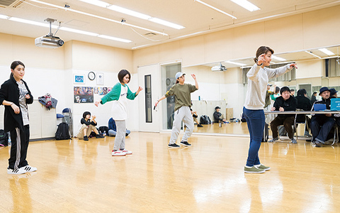 ダンスシーンを多角的に分析し、プロとして活動するために必要な知識を身につける。また社会人としての一般常識、マナーなどについても学習。