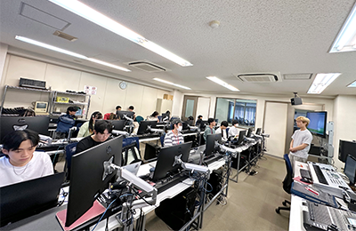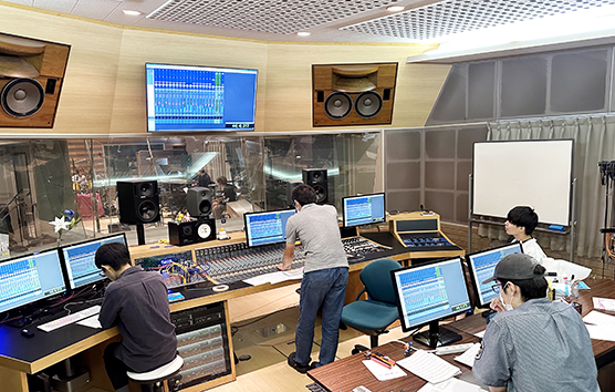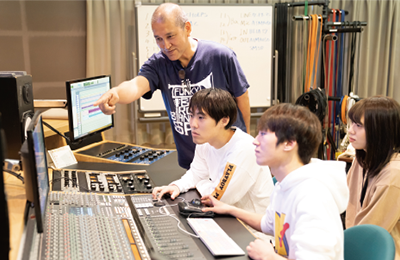 学内にあるレコーディングスタジオ(SOUND INN CAT)を使用してレコーディング実習を実施。一連の流れやエンジニア、アーティストとのやりとりなど、ディレクションや作品のプロデュースを学びます。