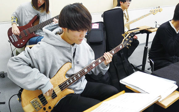 それだけに、リーディングの授業はさまざまなジャンルに挑戦する場と位置づけており、より広い視点を持ったベーシストを育成できるようサポートしています。
