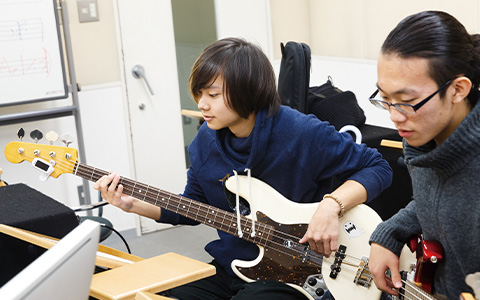 プレイヤーとして必要な基礎からハイレベルなテクニックの技術と知識を身につける。また、ジャンルや音楽スタイルへのアプローチ方法を、音楽理論を絡め、それぞれの楽器の特性に合わせて効果的に学習します。