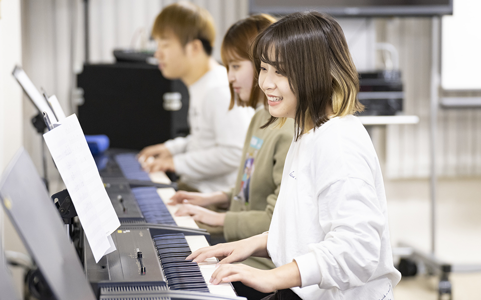 パフォーマンスとしての表現力と演奏で聴かせる表現力。いずれも、ステージ実習やライブイベントなど経験を積み重ねて身につけ、向上させていきます。