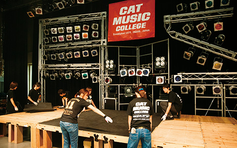 器具や機材の扱い方から作業のルール・マナーなど、舞台・照明に関する基礎から学習。公共ホール並みの設備を持つCAT HALLは学びに最適な環境です。