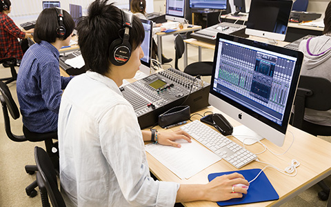 PA(コンサート音響)とレコーディングを基礎から学び、目標に向けて2年次に専門クラスを選択。CAT HALLなど専用教室を使っての実践教育が特徴です。
