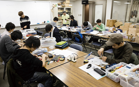 実習でケーブルや電子機器を製作して、機器の構造理解やメンテナンス、現場での応急処置などができるようにハードウェア関連の知識と技術を深めます。