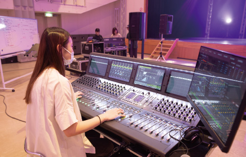 コンサートやライブにおける音を観客に届けるPAエンジニア。PAシステムのセットアップから、音量・音質調整を実際のコンサート・ライブ制作の流れに合わせて実践形式で習得。また、さまざまな音響機材に触れ、特徴を学ぶことにより現場で活躍できる即戦力となる人材を目指します。